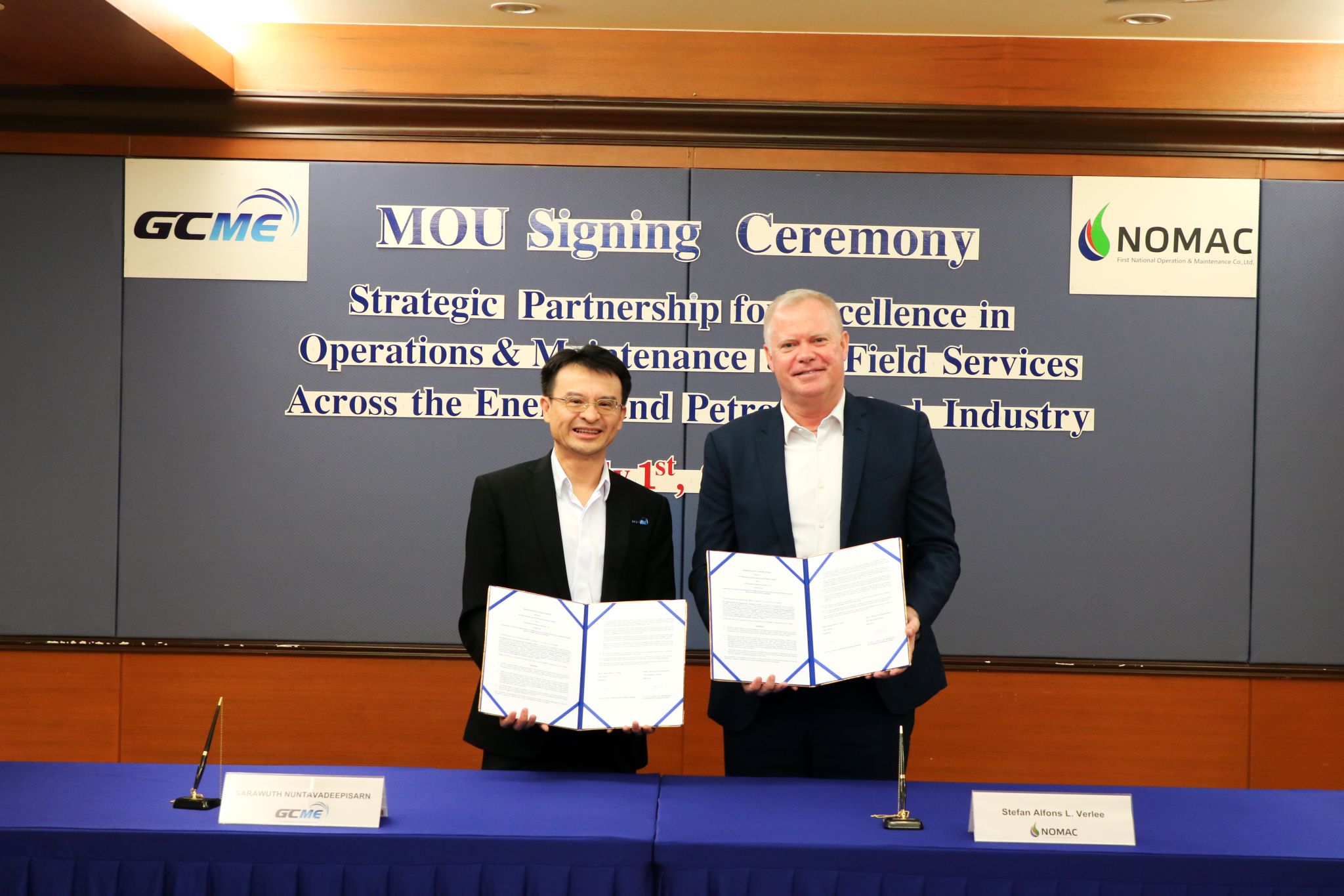 The agreement, signed by Mr. Sarawuth Nuntavadeepisarn, Managing Director of GCME, and Mr. Stefan Alfons L. Verlee, Director of NOMAC, establishes a framework for collaboration in operations, maintenance, and field services for existing and future assets owned by GCME and its affiliates.