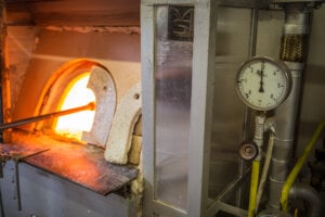 The bulk of these emissions come from the energy-intensive melting process, which uses natural gas combustion to melt raw materials at temperatures over 1,500°C.