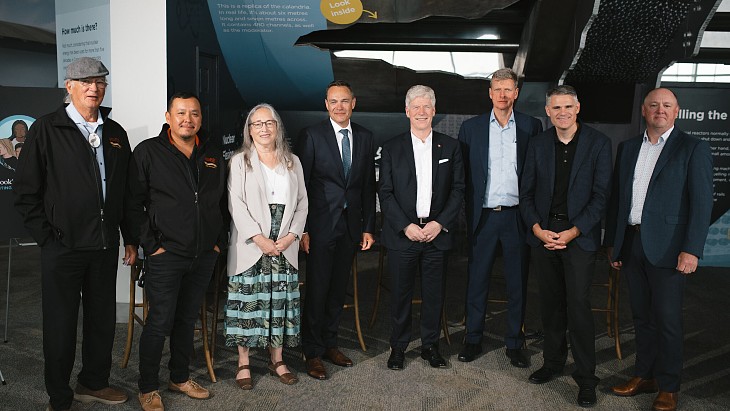 Federal Minister of Energy and Natural Resources Tim Hodgson (pictured above fourth from right) visited the site to announce the installation of an Isotope Production System in unit 6, which was the first unit to complete Bruce Power’s Life-Extension Program and Major Component Replacement Project.