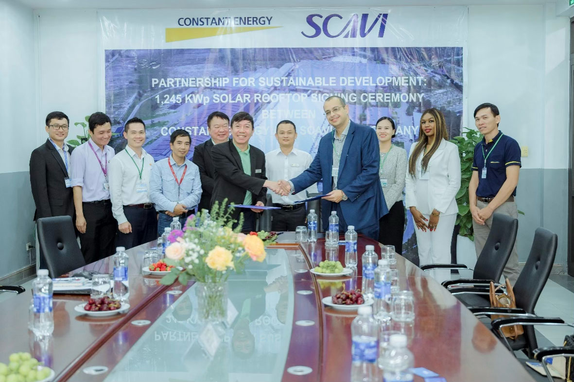 Constant Energy has entered into a groundbreaking 20-year strategic partnership with Scavi Hue Company a leader in Vietnam’s textile and garment industry, to support its transition to renewable energy and contribute to Vietnam’s net-zero 2050 emissions goal. The partnership includes the installation of a 1,245 kWp solar rooftop at Scavi Hue’s factory at Phong Thu Ward, Phong Dien District, Hue City.