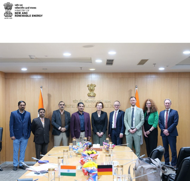 A high-level German delegation led by Christine Toetzke, Director General for Asia, Latin America, the Middle East, and Eastern/South-Eastern Europe at the Federal Ministry for Economic Cooperation and Development (BMZ), met with Shri Santosh Sarangi, Secretary of the Ministry of New and Renewable Energy (MNRE), in New Delhi today.
