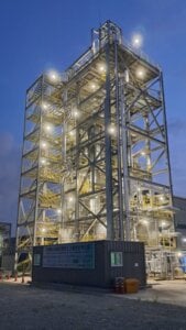 Unlike conventional gas power plants that require separate CO2 capture, KIER’s chemical looping combustion technology integrates the process. Oxygen-carrying particles supply pure oxygen to the fuel, preventing nitrogen from entering the reaction. As a result, emissions consist only of CO2 and water vapour, allowing for direct carbon capture after condensation. The process also eliminates nitrogen oxides (NOₓ) – a potent air pollutant.
