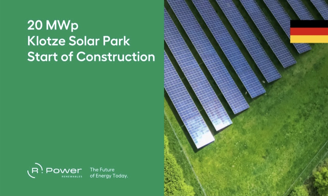 R.Power Renewables has begun construction of the 20 MW Klotze Solar Park in Saxony-Anhalt, Germany. This marks the company’s first utility-scale photovoltaic project in Germany and represents an important step in expanding its presence in Western Europe.
