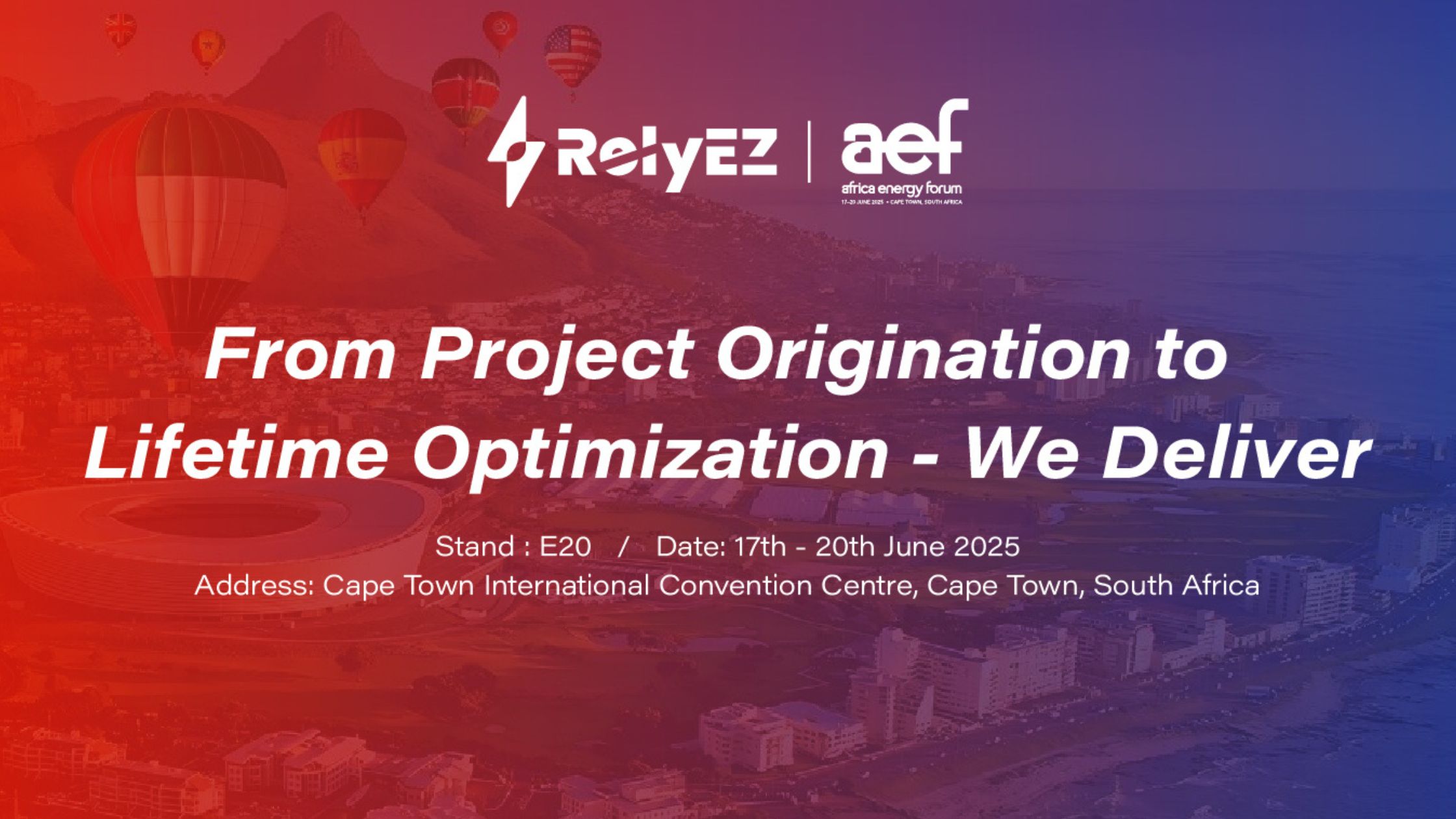 AEF attendees are invited to Booth E20 to connect with RelyEZ’s commercial and technical teams, discuss regional project opportunities, and explore how RelyEZ’s integrated product and project approach can support Africa’s clean energy goals. CEO Ms. Naomi Zhang will also speak during the forum to share lessons learned from global deployments and insights into future trends in energy asset management.