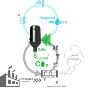 The firm uses its CarbonCloud system to freeze and separate CO2 through a process called cryogenic reverse-sublimation.