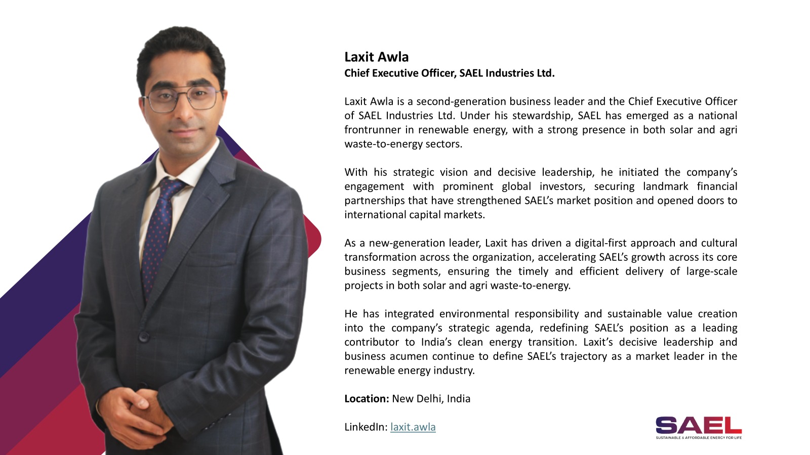 Sukhbir Singh Awla, Co-Founder & Director, SAEL Industries Limited, mentioned, “We thank the Government of Uttar Pradesh for entrusting and facilitating SAEL Industries Ltd. to establish a solar manufacturing facility. This facility will be a major leap for scaling our manufacturing capabilities and reinforcing our contribution to the future of solar manufacturing in India. Setting up this integrated facility in Uttar Pradesh allows us to bring technology and manufacturing close to home while contributing actively to India’s clean energy transition. It aligns with the state’s solar policy and national missions like Viksit Bharat @2047 and Atmanirbhar Bharat and enables us to contribute towards strengthening the domestic supply chain, reducing reliance on solar equipment imports.”