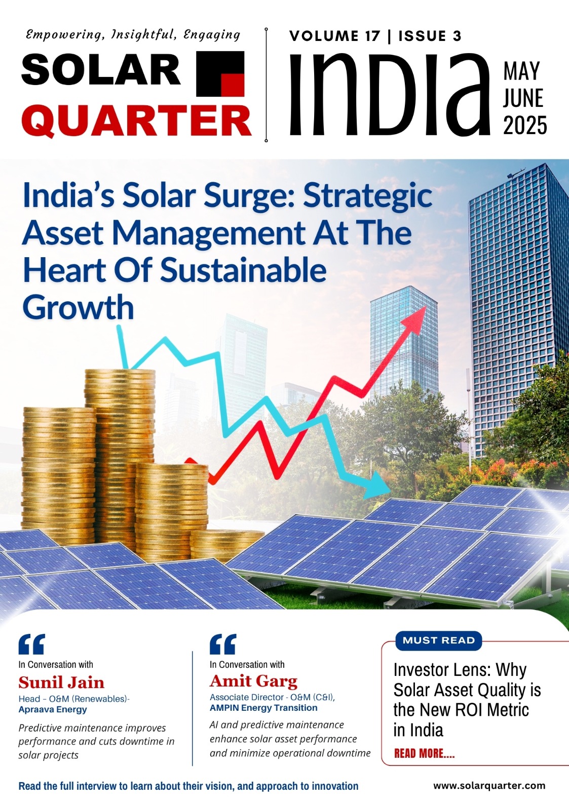 In this pivotal edition of SolarQuarter India, we spotlight the critical role of strategic asset management in driving India’s solar growth story. As the nation surges ahead in renewable energy adoption, experts like Sunil Jain of Apraava Energy and Amit Garg of AMPIN Energy Transition delve into the transformative power of predictive maintenance and AI in enhancing solar asset performance. Featuring investor insights on asset quality as a new ROI metric, this issue offers a compelling look at innovation, efficiency, and long-term sustainability shaping India’s solar future. Dive into the issue to explore more.