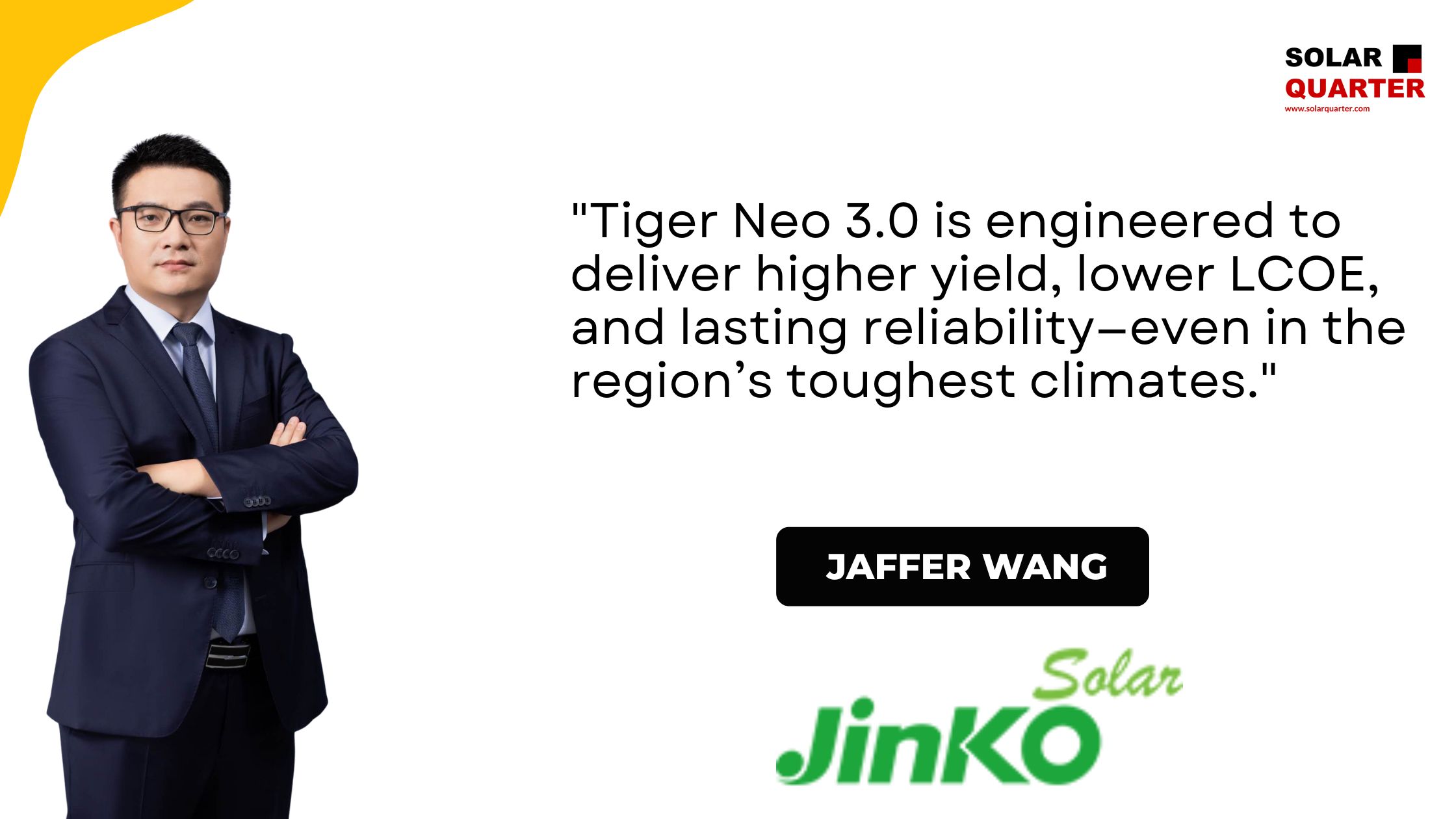 At SNEC 2025, Jinko Solar unveiled its most advanced N-type solution yet the Tiger Neo 3.0. In this exclusive conversation, Mr. Jaffer Wang, Deputy General Manager, delves into the groundbreaking upgrades powering this 670 W module, its performance edge in harsh environments, and Jinko Solar’s strategic focus across the Middle East and Central Asia. He also shares insights on market trends, bankability priorities, and how Tiger Neo 3 is redefining the economics of solar for the region.